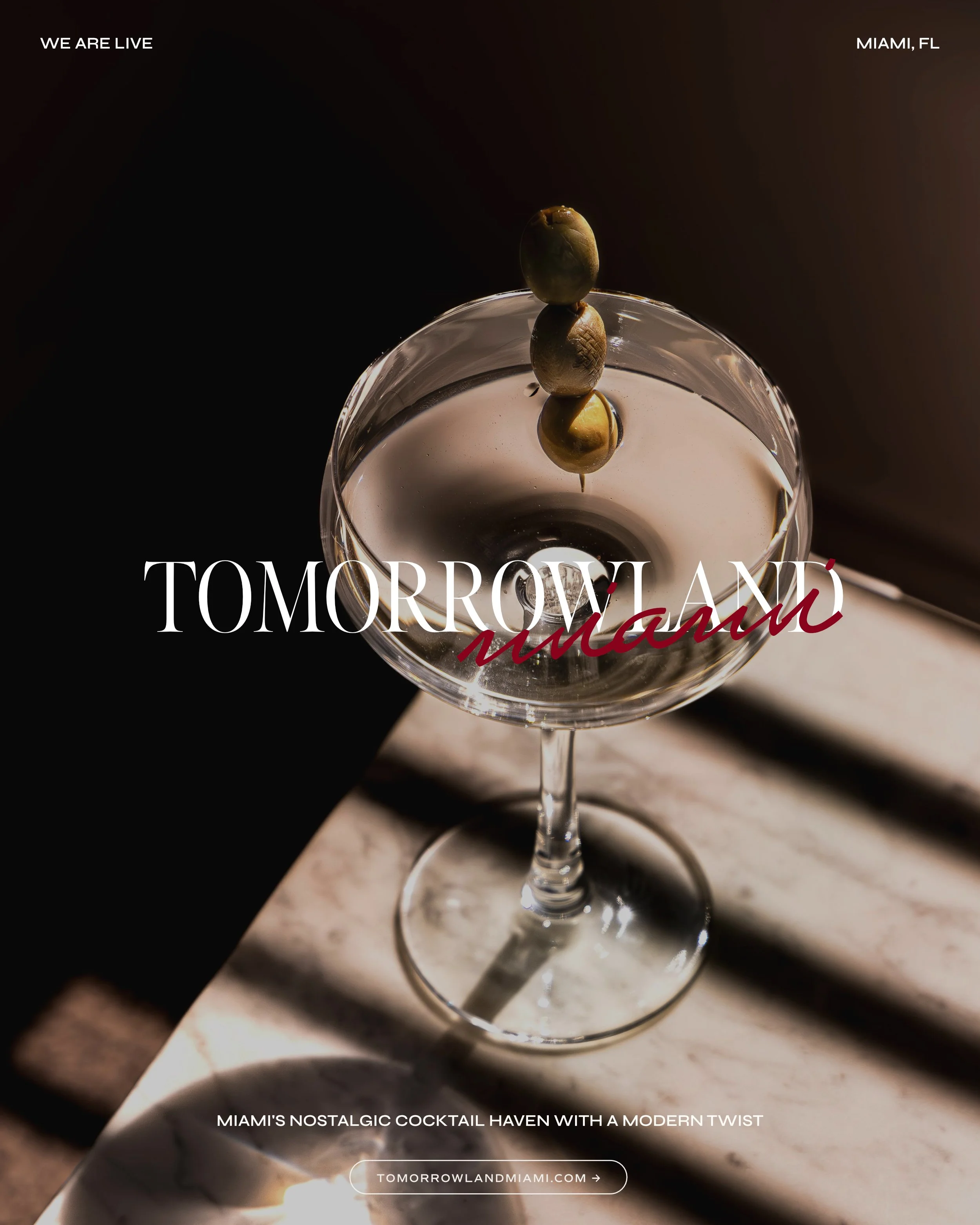So excited to share the launch of the new website I designed for Tomorrowland Miami — the city’s newest cocktail haven where nostalgia meets modern sophistication. This project was extra special, as I had the joy of collaborating with my family friends who are also the visionary founders behind Tomorrowland. Together, we reimagined their brand and brought it to life online, capturing the essence of their space: intimate interiors, bold cocktail artistry, a vibrant outdoor patio, and curated DJ sets that pulse with Miami’s rich cultural rhythm. Every detail was designed to ignite the senses and celebrate the spirit of this incredible city.